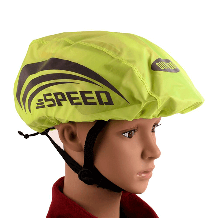 Et elastikbånd i kanten og snor bagi sørger desuden for, at du kan stramme regnslaget så det passer til din cykelhjelm.